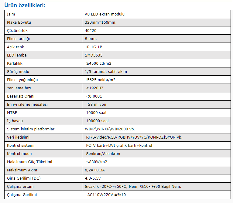 1) Yüksek kaliteli LED çipi ve yüksek anti-statik elektrik kapasitesi.